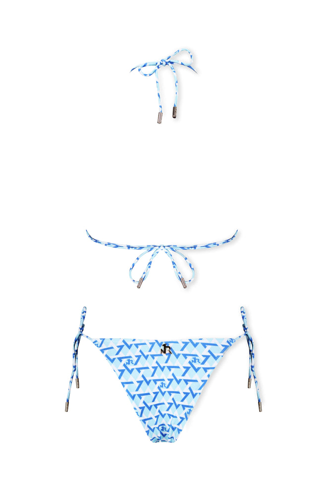 Sliding triangle cups for adjustable coverage and fit. Ties at the neck and back for customizable support.Deep neckline for a flattering, feminine shape.Soft, lightweight, stretchy fabric that gently hugs the body.