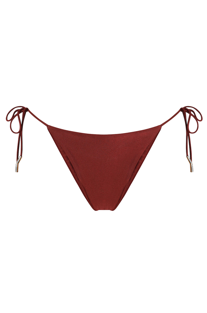 Minimal Tie-Side Bikini Low-rise, clean-cut bottom with delicate side ties. Minimal back coverage for a sculpted and bold silhouette. Soft and feminine finish with a sleek, barely-there shape.