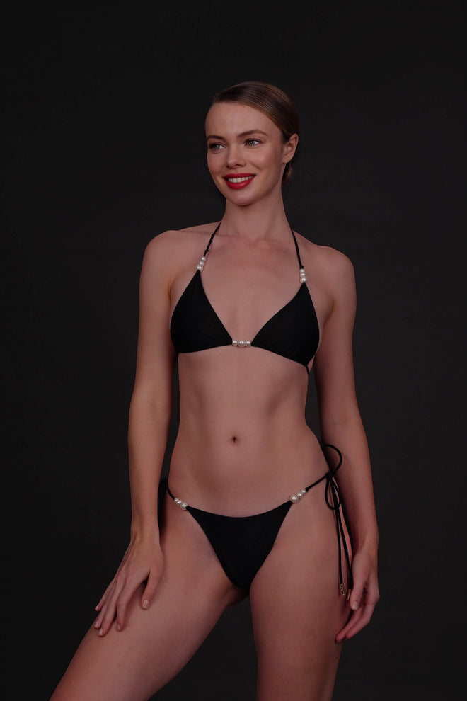 Tie-side bottom with a flattering, adjustable fit. Pearl accents at the sides create a romantic and standout