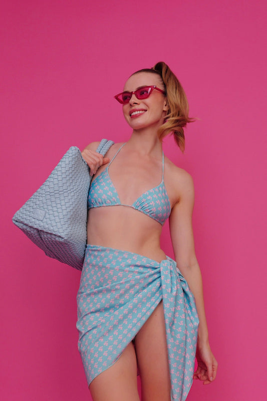 A short and elegant beach sarong that ties effortlessly at the waist, adding a chic touch to any beach look. The flattering cut offers light coverage without compromising on a sensual and relaxed vibe. Lightweight and easy to fold into any bag, it’s the perfect finishing touch to any beach or poolside outfit—with zero effort and maximum style.