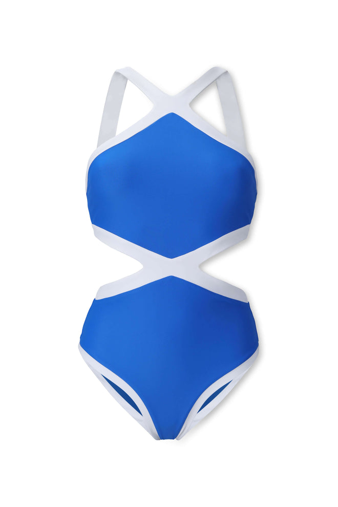 Silhouette Type: Bold and structured one-piece swimsuit with geometric side cutouts, creating the illusion of a two-piece while maintaining full coverage and support.