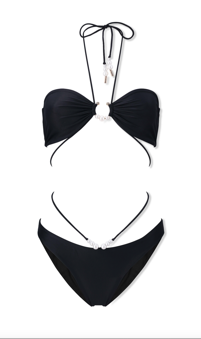 neck and back for a customizable fit. Delicate pearl detailing at the center adds an elegant and