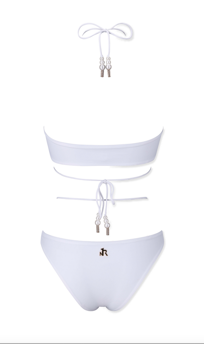 neck and back for a customizable fit. Delicate pearl detailing at the center adds an elegant and
