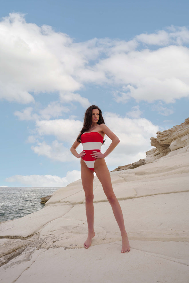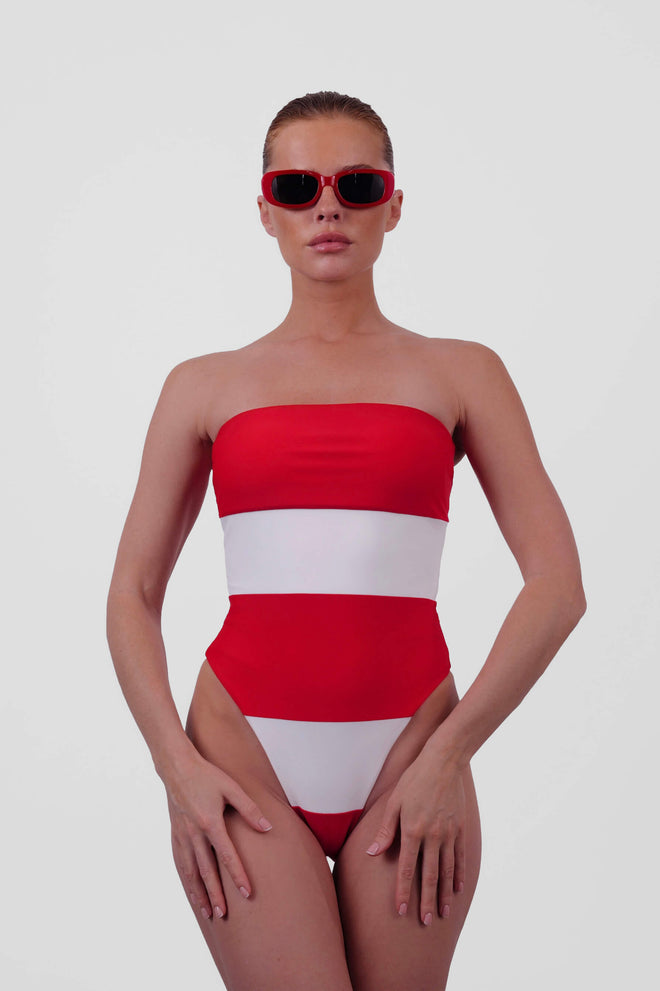 Ideal for: Women who want a sleek, modern strapless swimsuit with a graphic edge and a flattering cut – perfect for sunbathing and stylish getaways.