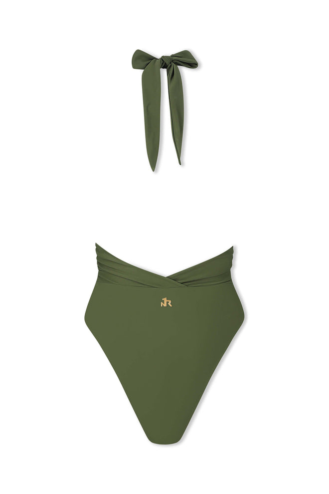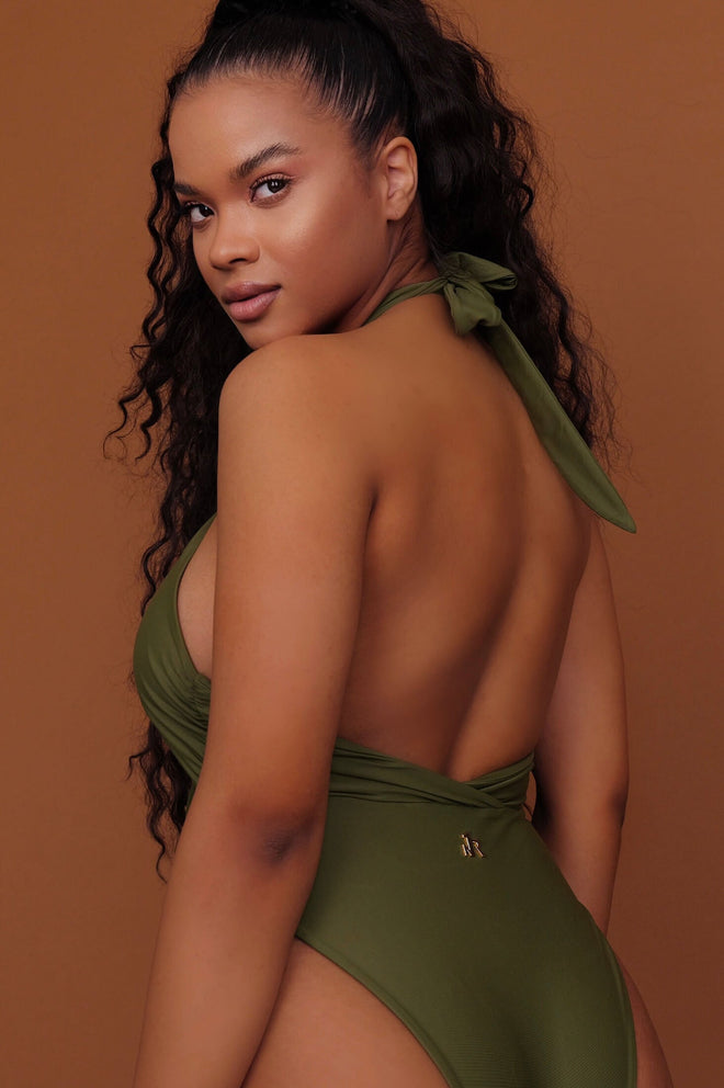 Bottom Cut: Ultra high-leg V-cut bottom for a leg-lengthening, daring silhouette. Back Design: Fully open back with halter tie at the neck.Fabric: Smooth, double-layered