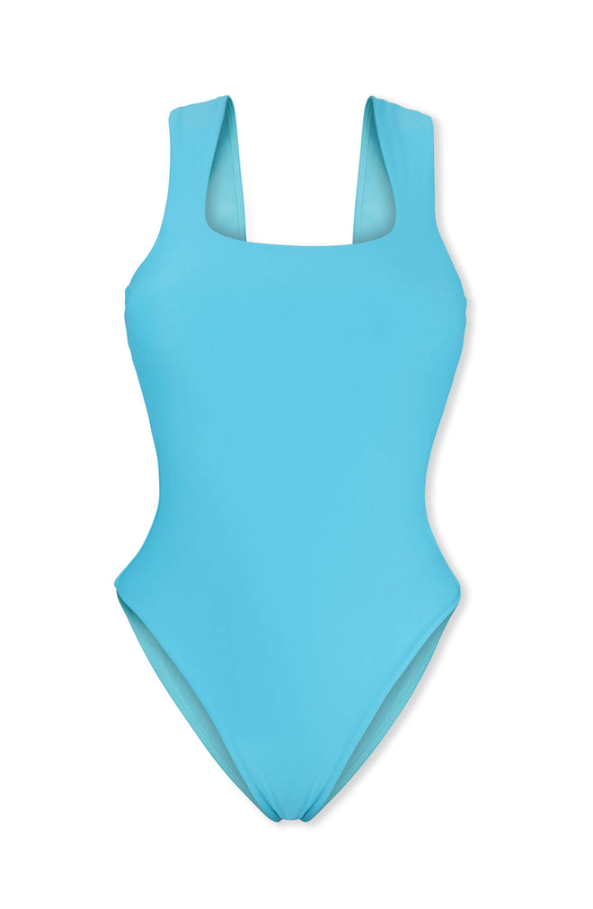 Silhouette Type: Timeless one-piece swimsuit with a squared neckline, wide straps, and a