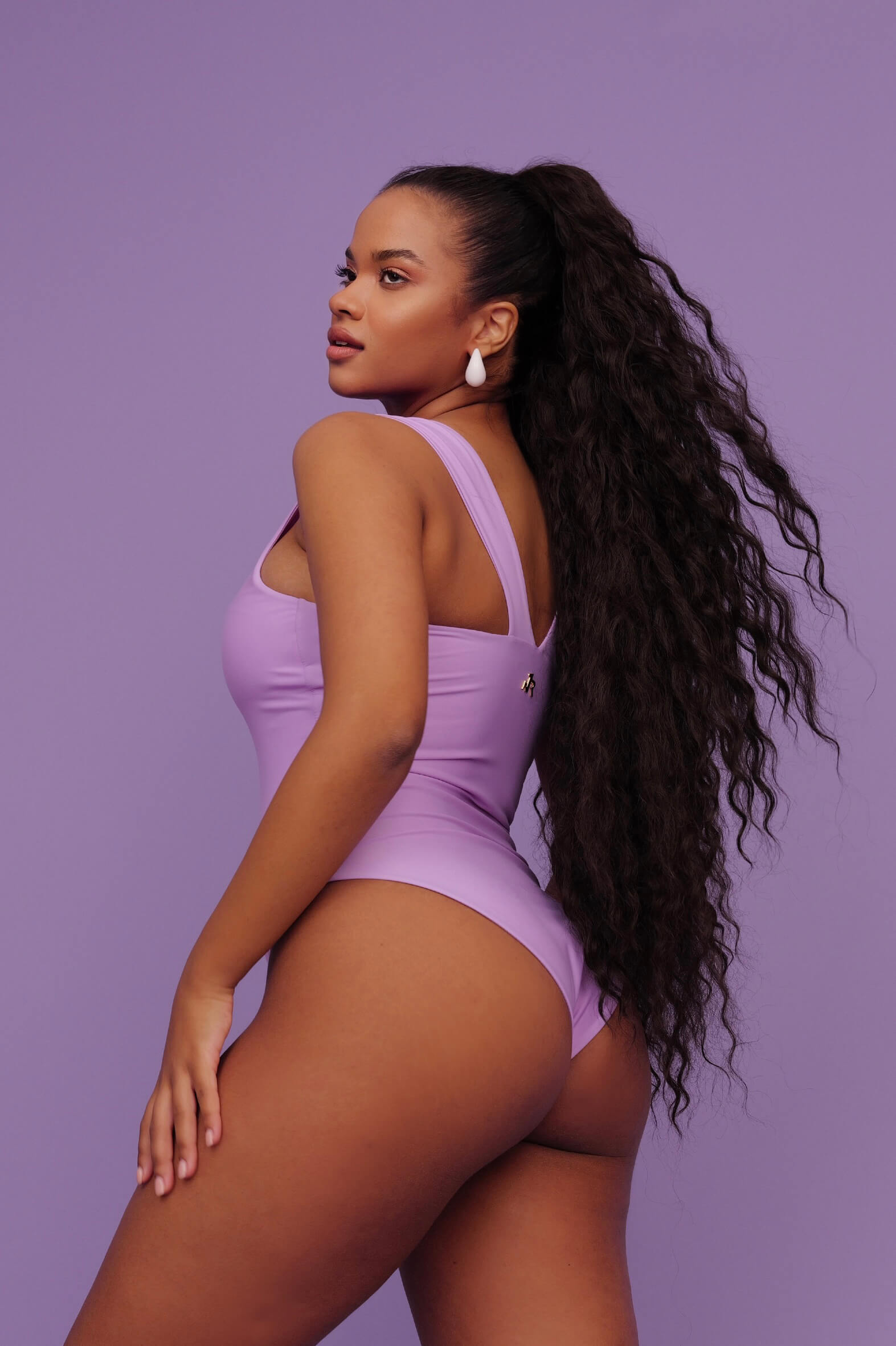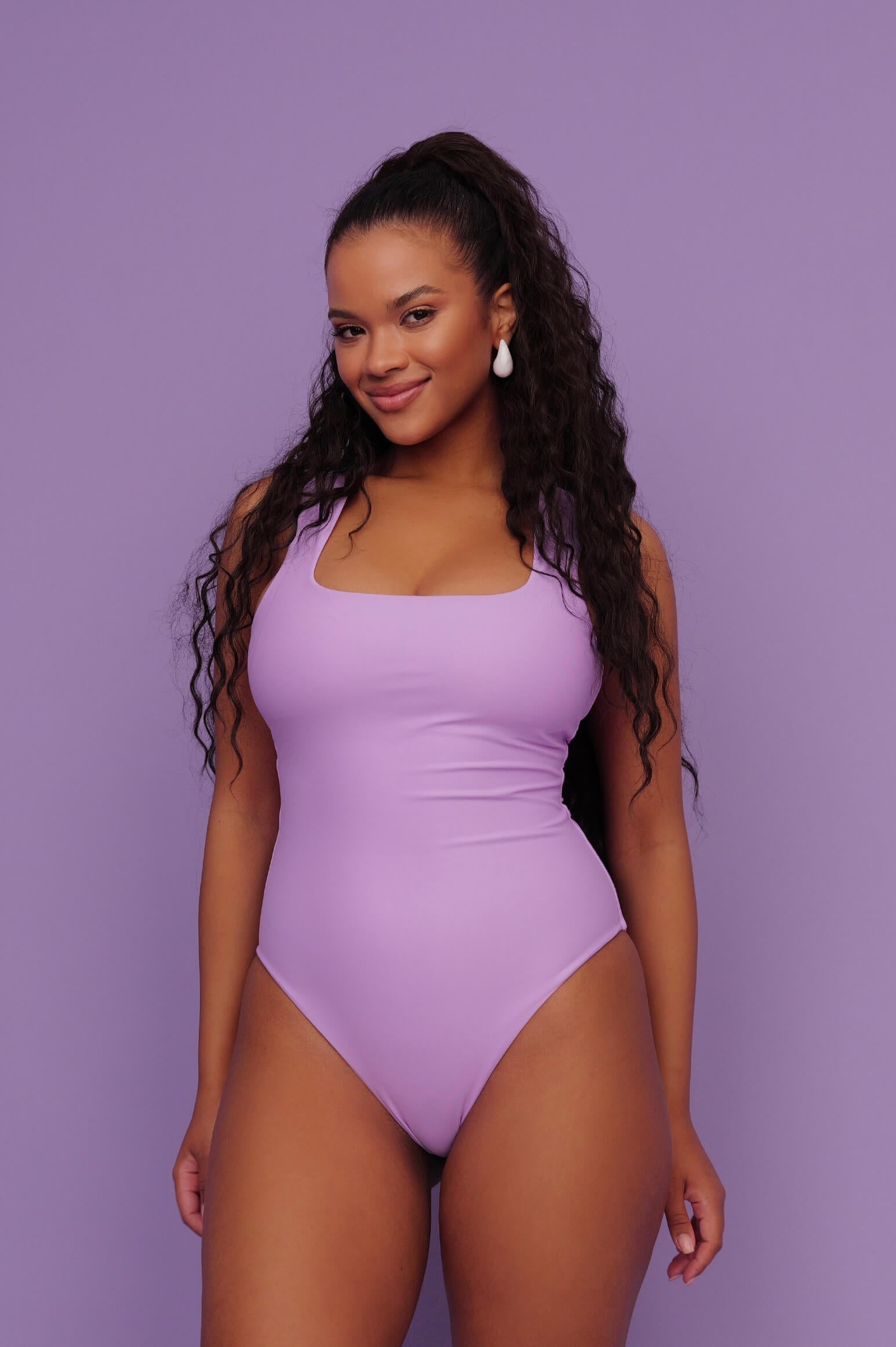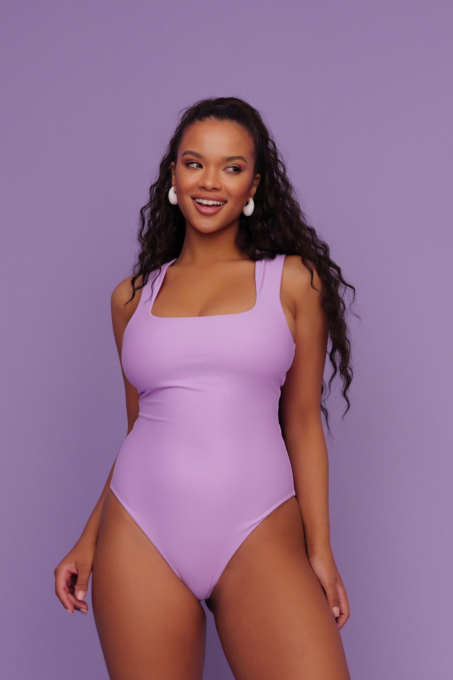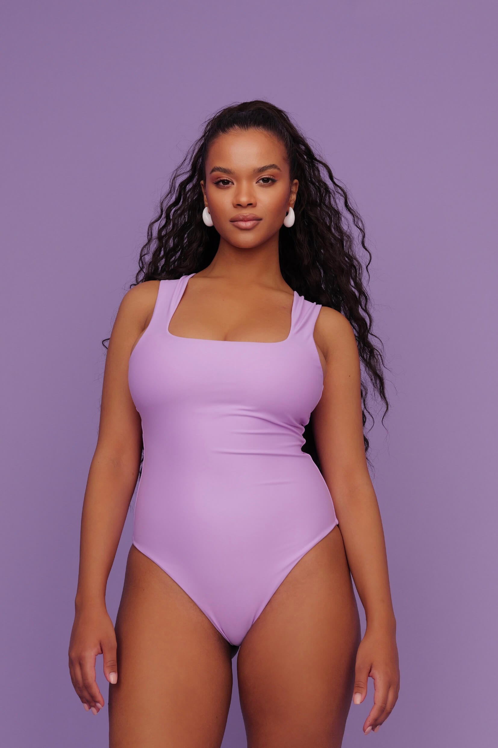Silhouette Type: Timeless one-piece swimsuit with a squared neckline, wide straps, and a smooth, structured fit. Neckline: Mid-to-high square neckline – refined and flattering, with a strong yet soft presence. Straps: Wide, fixed shoulder straps for added comfort and natural support.