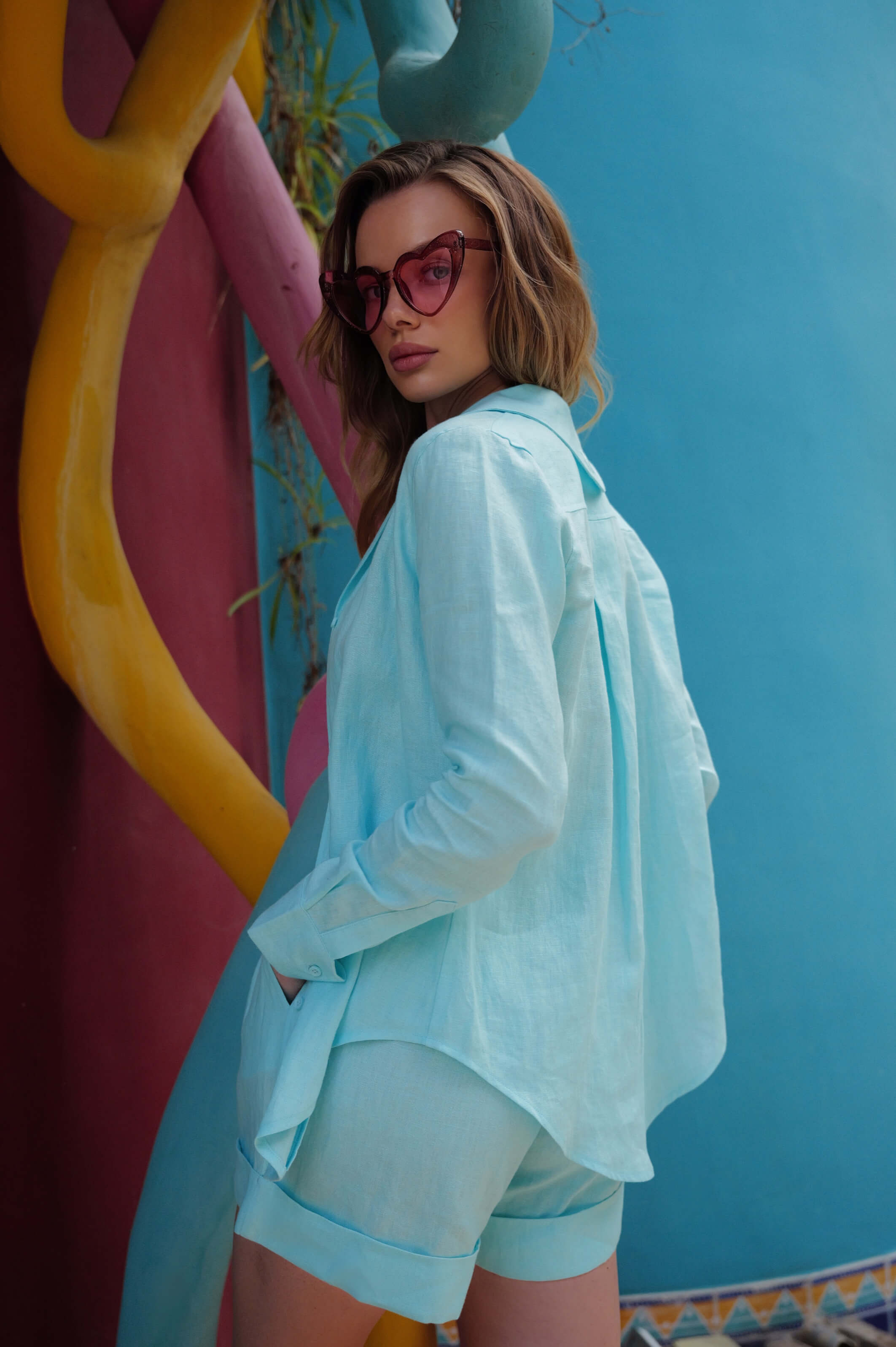 Crafted from 100% natural linen, this lightweight long-sleeve shirt features a relaxed, slightly oversized fit for maximum comfort. It’s designed with a classic collar, soft lapels, and a clean button down front, offering breathability and effortless elegance. A unique touch is added with a special back collar detail, featuring an intricately embroidered logo that elevates the design with a signature finish. The natural texture of the linen provides a refined yet laid back look, perfect for layering or wearing on its own.