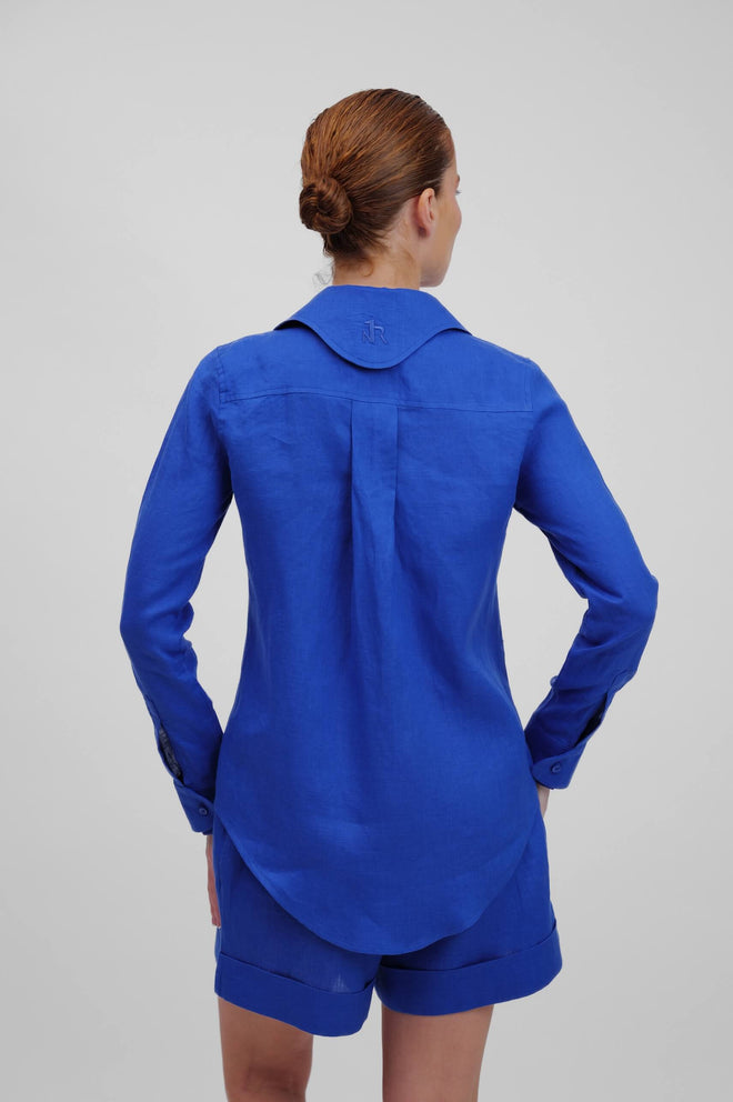 Expertly tailored from 100% natural linen, these high waisted shorts combine structured elegance with breathable comfort. Designed to flatter the silhouette, they feature soft front pleats, discreet side pockets, and a clean back for a smooth finish. The wide waistband offers a defined fit and is adorned with a finely embroidered logo, adding a signature touch of sophistication. With their natural texture and airy feel, these shorts are the perfect balance of polished and effortless ideal for warm days and elevated resort styling.