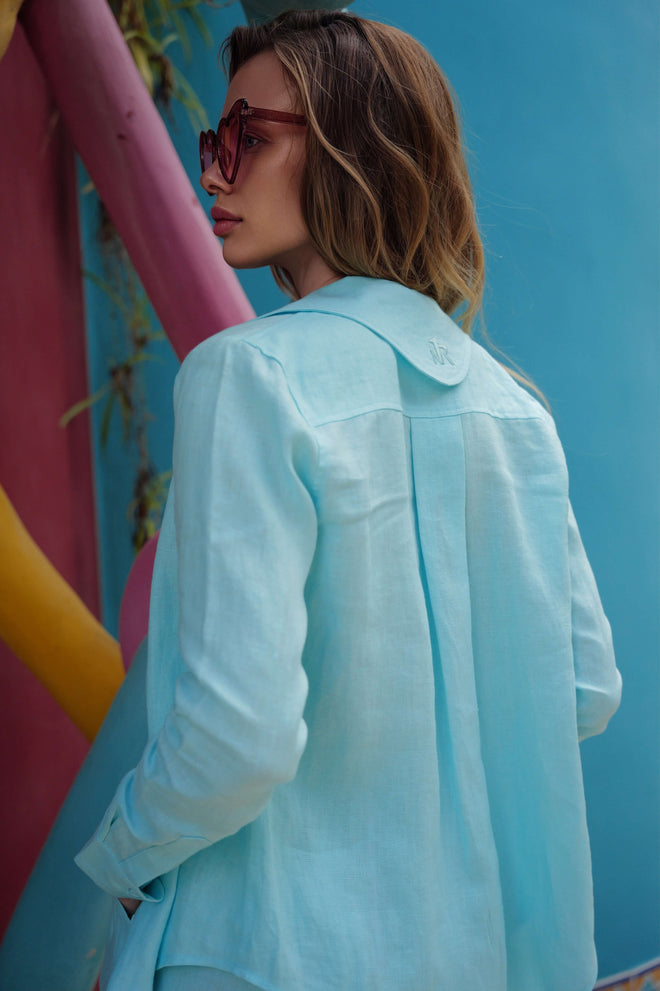 Expertly tailored from 100% natural linen, these high waisted shorts combine structured elegance with breathable comfort. Designed to flatter the silhouette, they feature soft front pleats, discreet side pockets, and a clean back for a smooth finish. The wide waistband offers a defined fit and is adorned with a finely embroidered logo, adding a signature touch of sophistication. With their natural texture and airy feel, these shorts are the perfect balance of polished and effortless ideal for warm days and elevated resort styling.