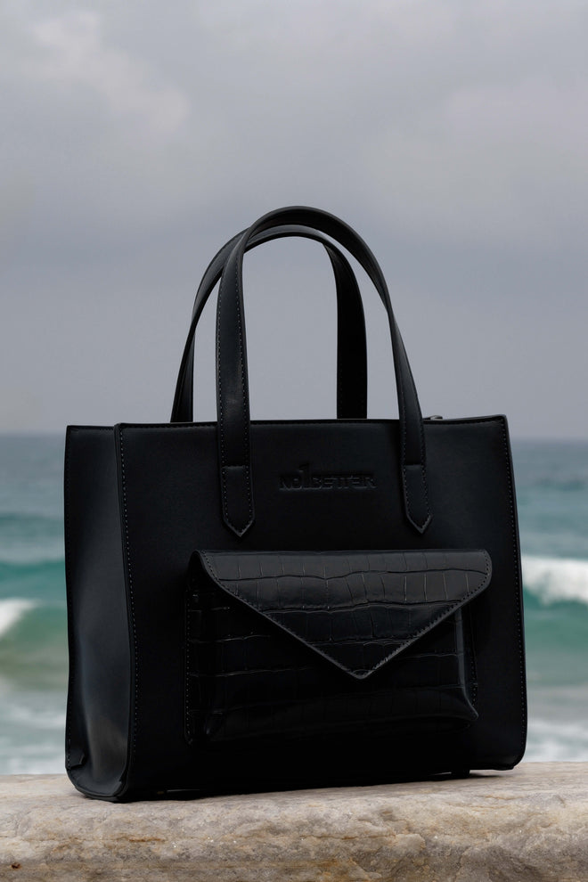 • Interior: Single main compartment – sleek and minimal with room for your essentials (small tablet, notebook, cosmetics, and more)